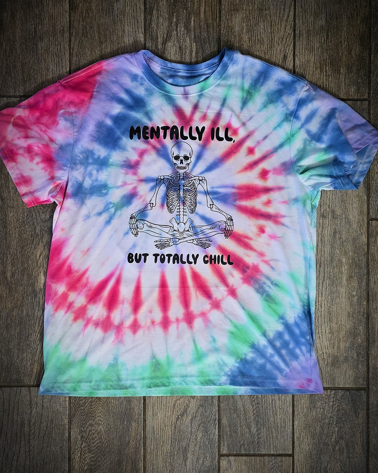 Mentally Ill but Totally Chill – Tie-Dye Skeleton Tee